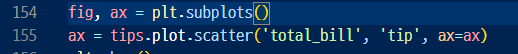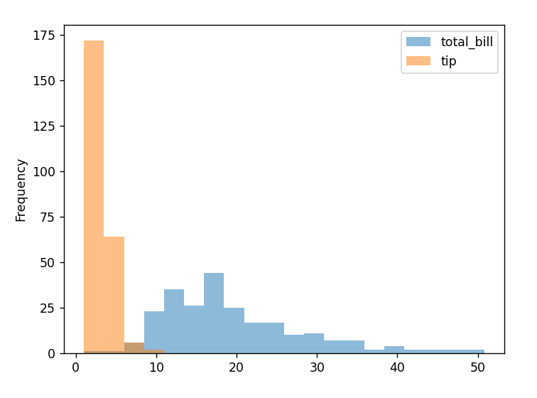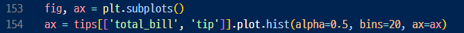 2. 투명도 조절하고 tips 데이터프레임에서 2개의 시리즈를 선택해 그리기