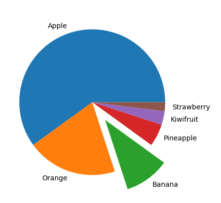 -labels 매개변수사용해서 라벨도 붙이고 explode는 부각, 0에서 1사이의 값을 리스트로 전달