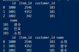 그러면 customer_id가 left_on 으로 되어 있으니 left_on으로 지정해준 customer_id 가 남으며 합쳐지지