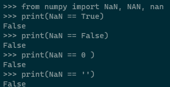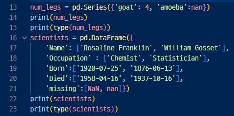 누락값 - NaN, NAN, nan 와 같은 방법으로 표기 가능.