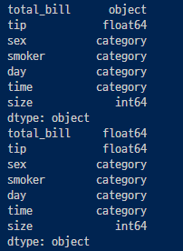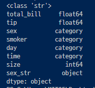 더 자세히 tips.dtypes 메서드를 사용해서 확인해보면