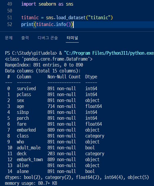 이번에 사용해볼 데이터는 seaborn에 있는 titanic 데이터 (씨본에도 있구나..ㅎ)
