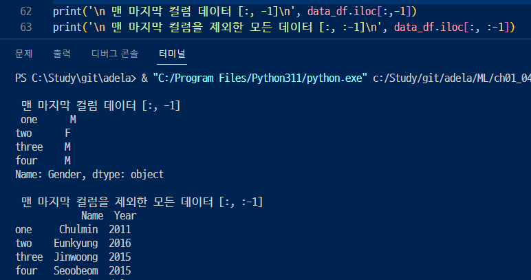 ▶ 열 위치에 -1 을 가져와서 마지막 열 데이터 가져오는 것도 가능.