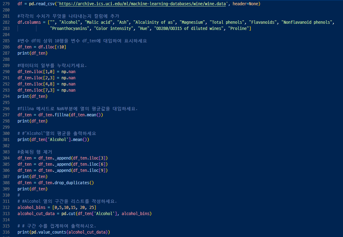 *286행 : 원래 책에는 head()로 나와있었는데 그러니까 304~6에서 append한게 맨 밑으로 가서 보이지않아서 차라리 10행까지 데이터프레임을 하나 따로 떼서 df_ten으로 만든다음에 append하는게 보이도록 진행했다.