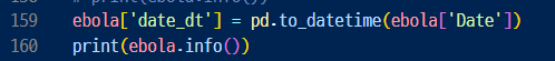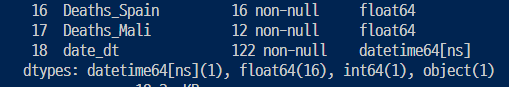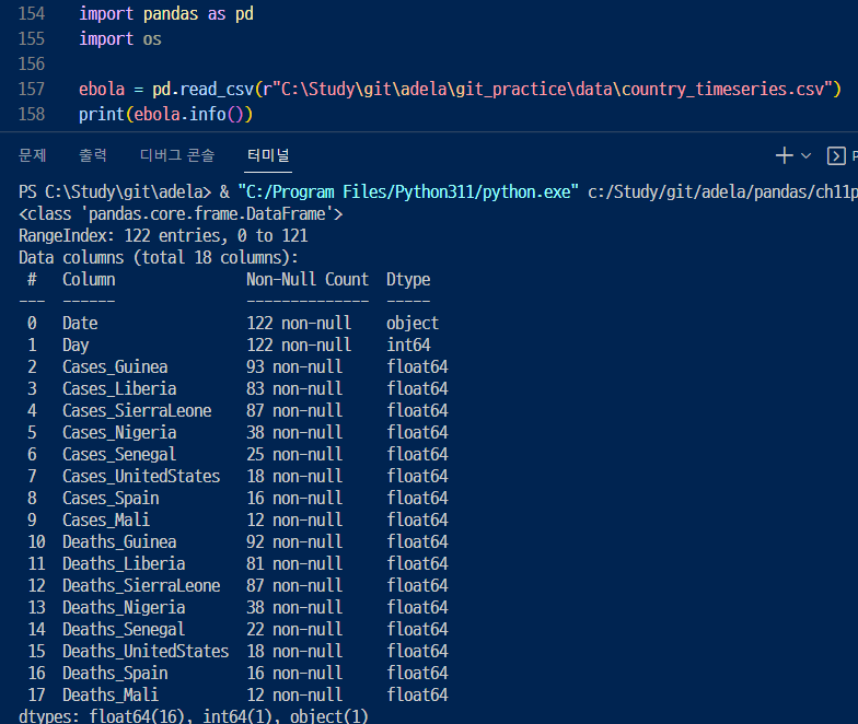 ▶ 맨 위에 0행, column을 보면 Date이지만 object로 되어 있음.