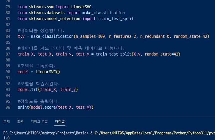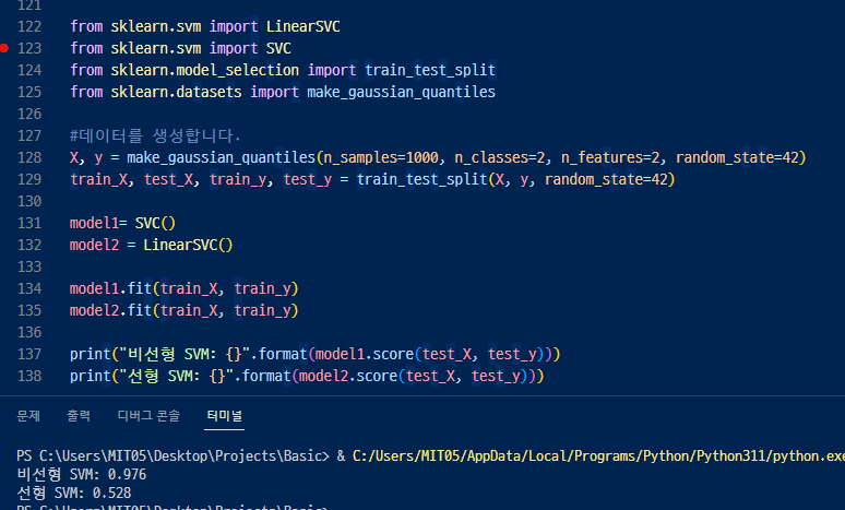 선형과 비선형의 모델의 정확도를 출력하면 이렇게 ▼ 비선형이 훨씬 훨씬 높다.