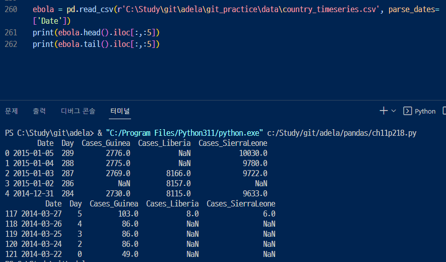 ▷ Date열을 datetime으로 변환해서 ebola을 다시 불러옴.
