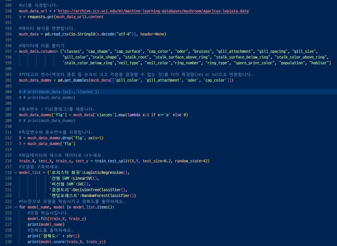 ▷그래서 앞에서 했던 버섯데이터에도 해봤다.