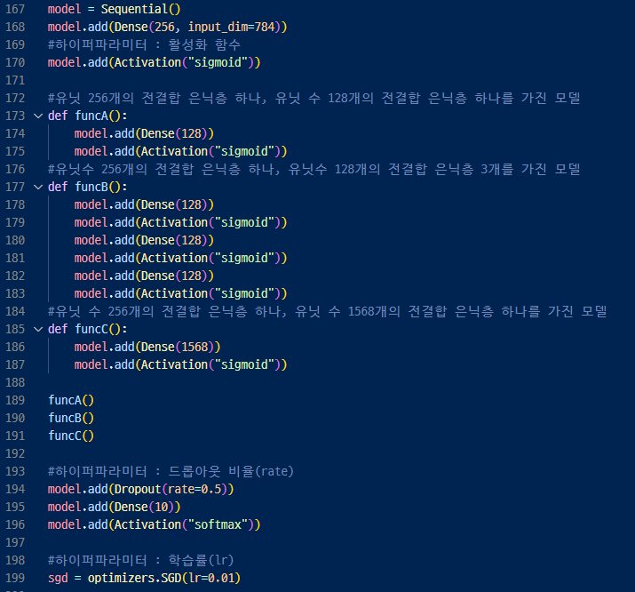#유닛수 256개의 전결합 은닉층 하나, 유닛수 128개의 전결합 은닉층 3개를 가진 모델