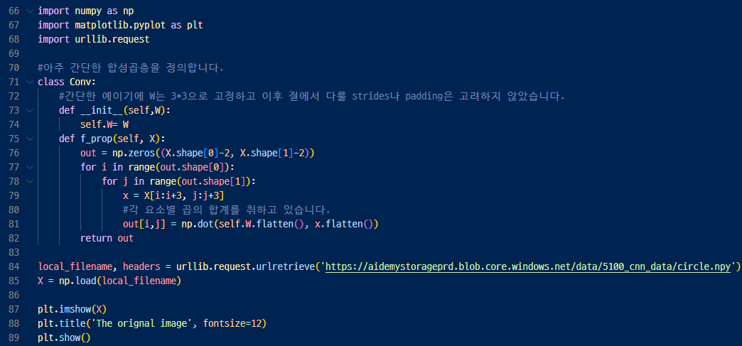 - 원본이미지가 행렬로 표시되고 그보다 작은 행렬을 곱(커널/필터)을 계속 진행해가면서 합산시키는것