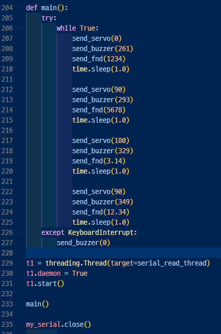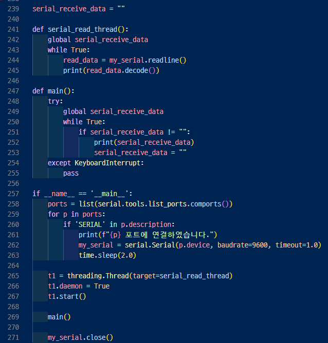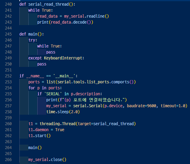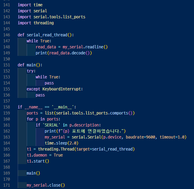 <시리얼통신 수신 쓰레드에서 값을 받아 main()함수에서 확인하기>