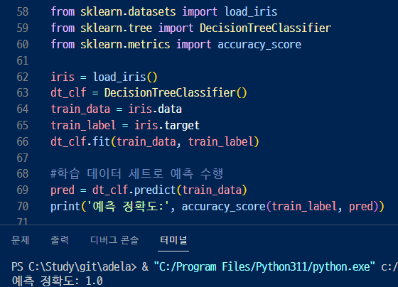 ▶ 정확도가 100%인 이유는, 이미 학습한 데이터로 테스트를 했기 때문에,,^_^