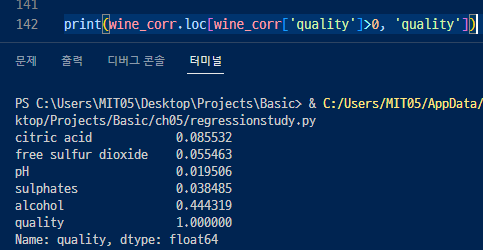 퀄리티와 관련된 부분에서 상관수가 0보다 큰 것을 추출.