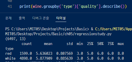 | Proj 데이터 기술통계분석 / 데이터 탐색 - 와인 퀄리티 (2) (0) | 2023.08.07 |