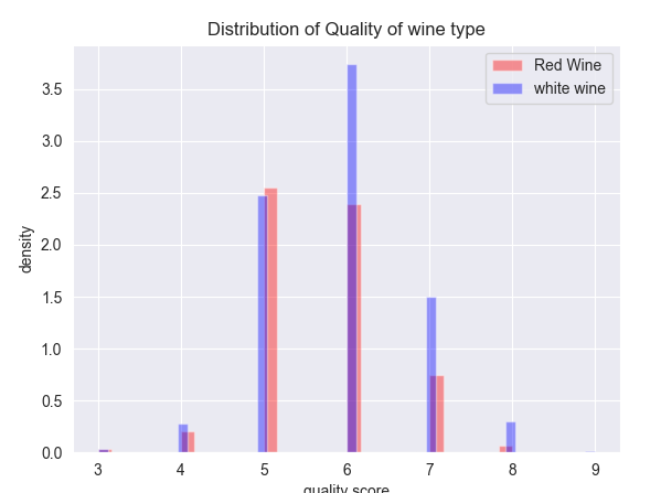 - 와인 종류별 품질의 분포 그래프로 그리기