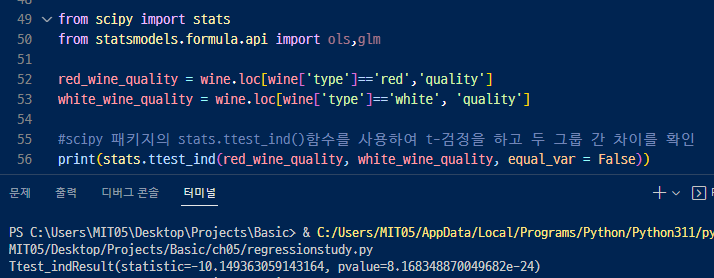 <t-검정, ttest> - install statsmodels 설치 필요.