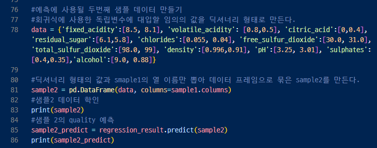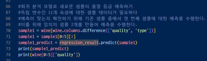 < 새로운 값을 넣으면 이쪽인지 저쪽인지 알 수 있게! 품질 등급 예측하기>