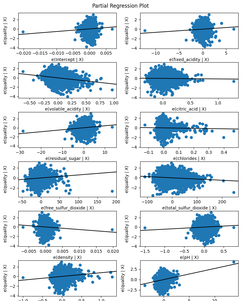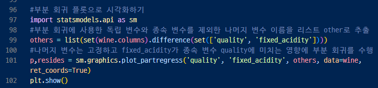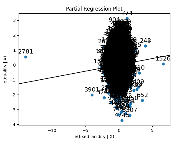 - fixed_acidity가 종속변수 quality에 미치는 영향을 분석하기 위해 부분 회귀 결과를 시각화 해보고