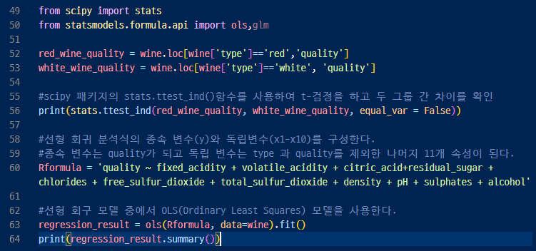회귀분석할때는 변수를 다 적어줘야함.(p값과 t값이 같이 나옴.)