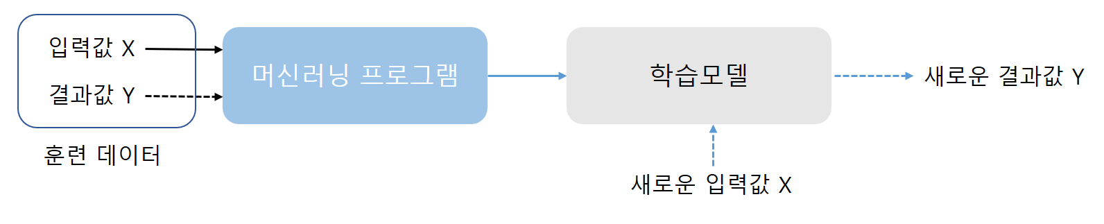 ▶ 지도학습 : 학습을 하기 위한 훈련 데이터에 입력과 출력을 함께 제공,