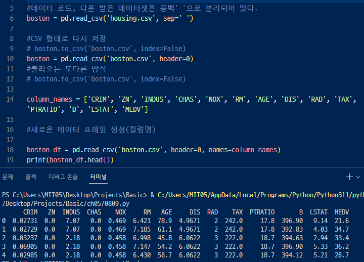 | 데이터수집 | 보스턴 주택 가격 데이터 : 사이킷런 내장 데이터셋 |