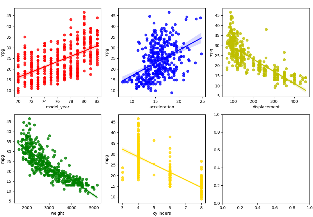 mpg = model_year * 0.75 + acceleration * 0.23 + displacement * 0.01 - weight * 0.01 - cylinders * 0.26 -16(y절편값)