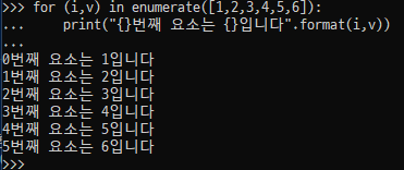 ▶enumberate()함수는 (인덱스, 요소값)과 같이 튜플형태로 반환해준다