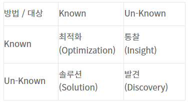 | 분석 업무 파악 | 인력 및 조직 | 분석 기법 |