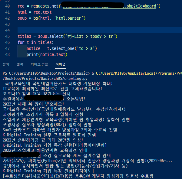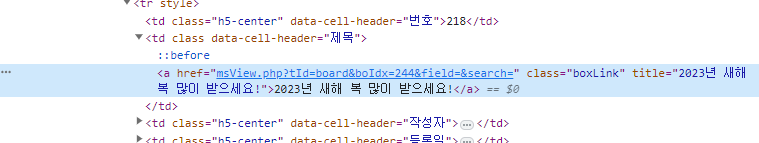 ▶select를 사용해서 그 위치까지 가서 select_one으로 앵커태그에 있는 제목과 주소를 불러올 수 있음.