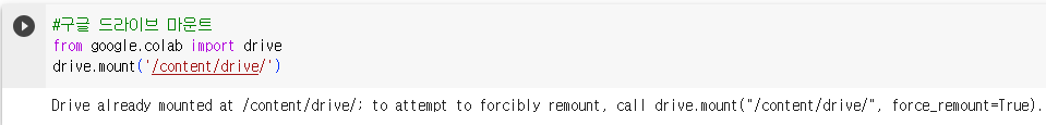 마운트 작업을 해야 구글 드라이브의 내가 올린 파일들이 보인다, 연결시킨다는 의미. 붙인다는 의