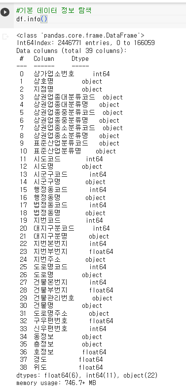▶ info()를 사용해 각 열의 타입이 어떻게 되어있는지 알수있음 (컬럼이 39개나...!)
