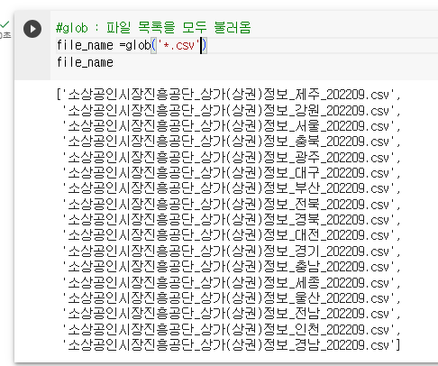 리스트 형태로 나와서 만약 3번째에 있는 서울의 내용을 불러오고 싶다면 인덱스번호로 원하는 파일을 불러오면 됨.