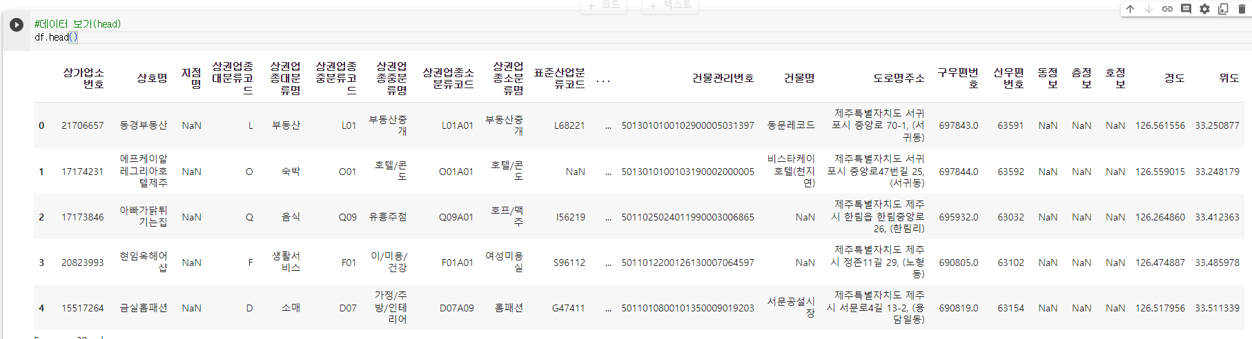 ▼ 데이터를 확인하기 위해 head를 사용해 불러오면 요렇게 나온다