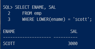 ▶ ename 을 모두 소문자로 해서 scott랑 동일한 데이터를 조회함