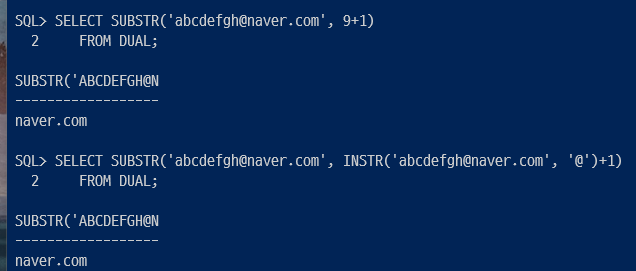 2 . SUBSTR에 INSSTR함수로 추출한 @의 자리 숫자 다음 철자를 시작 숫자로 사용