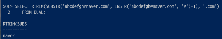 2-1 . naver 만 불러오고싶다면....!?!??! : 곧 배울 RTRIM함수를 이용해서 .com을 잘라주면됨