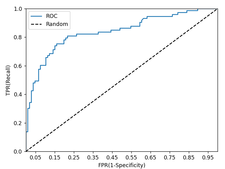 FPR이 작은 상태에서 얼마나 큰 TPR을 얻을 수 있느냐가 관건