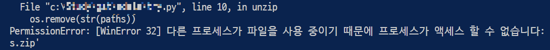 PermissionError: [WinError 32] 다른 프로세스가 파일을 사용 중이기 때문에 프로세스가 액세스 할 수 없습니다