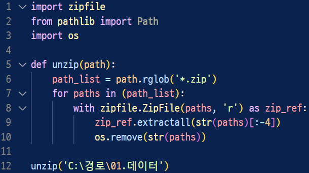 6. rglob를 이용해서 입력한 경로에 있는 zip 파일을 모두 찾는다.