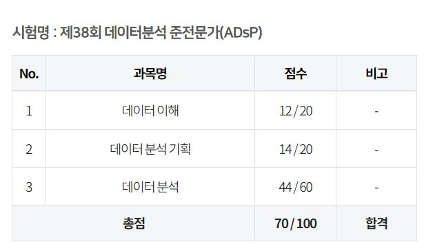 암튼 ADsP 38회 합격 후기 끗