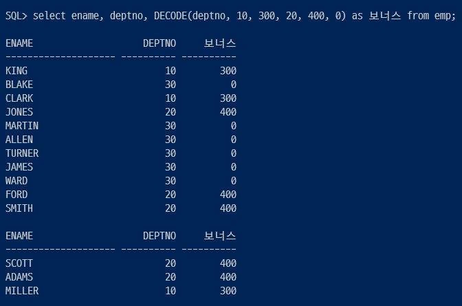 ▷ IF deptno = 10 then 300 / else if deptno = 20 then 400 / else 0 정리하자면 요고
