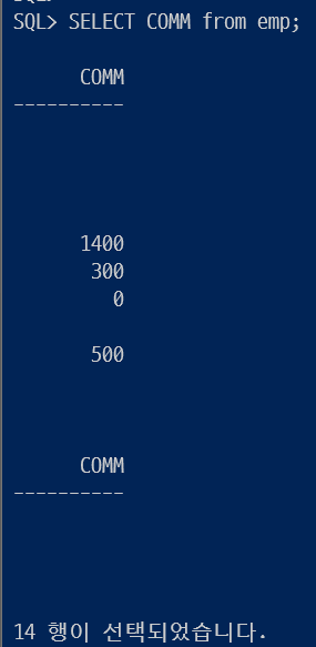 그래서 전체는 14개이지만 NULL이 대거 포함된 COMM 컬럼에는