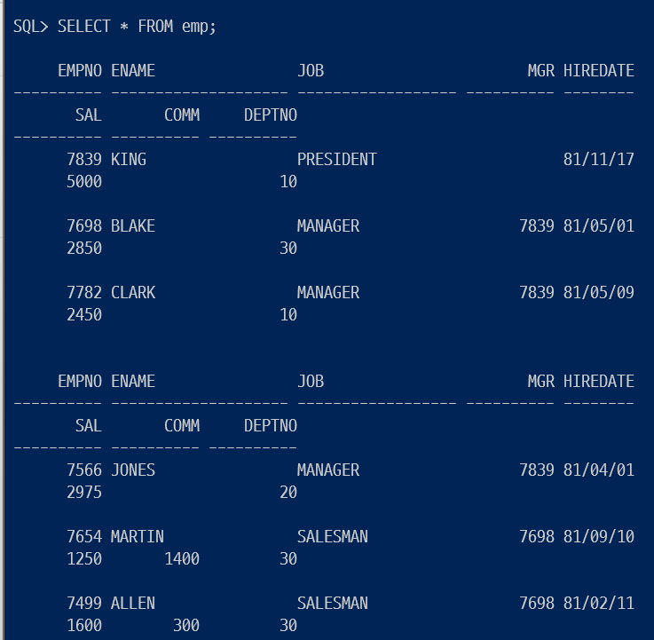 ▶ 커미션(COMM)컬럼에는 NULL값이 있는데