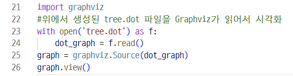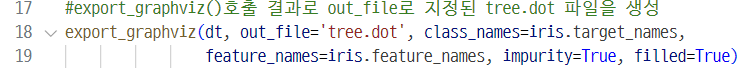 그리고 export_graphviz()도 작성. 학습이 완료된 estimator, output 파일명,