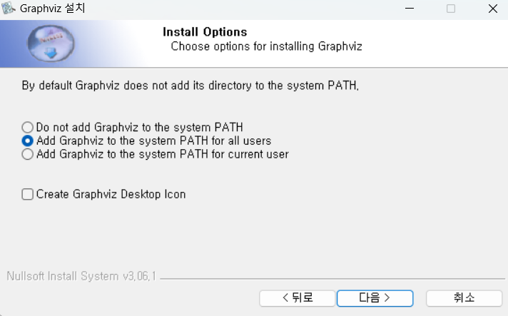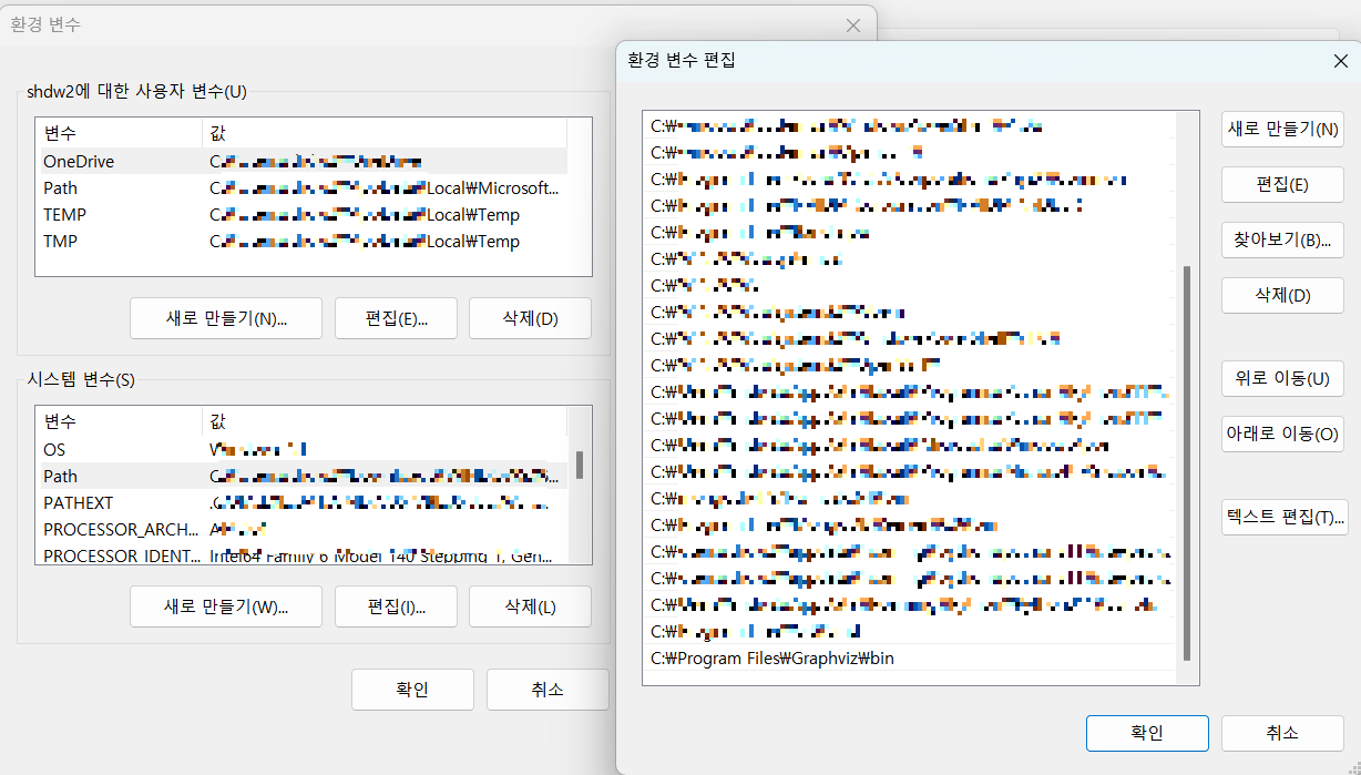 여기에 Graphviz 가 포함되어 있어야한다 \bin 까지 포함해서