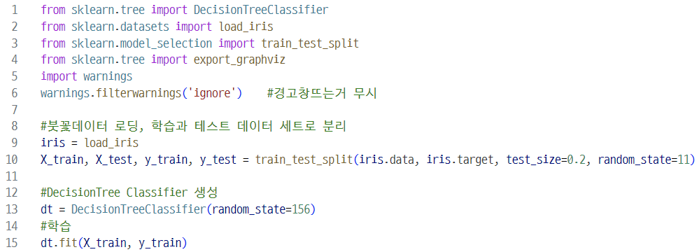 붓꽃 데이터 세트를 활용해 어떻게 만들어지는지 확인하기 위해 데이터 불러오고 학습까지