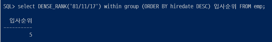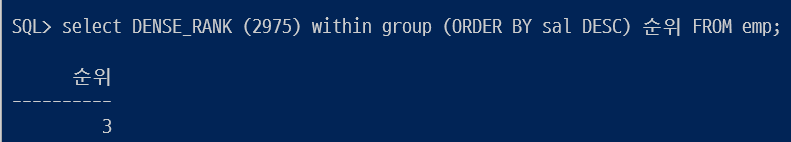 ▷ ORDER By sal DESC 인 within group에서 2975sal인 DENSE_RANK를 출력해라..!