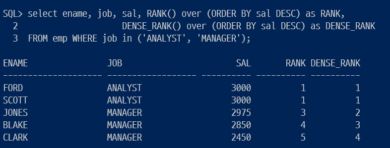 ▶ DENSE_RANK 바로 다음 괄호에 데이터를 넣고 사용할 수 있다.
