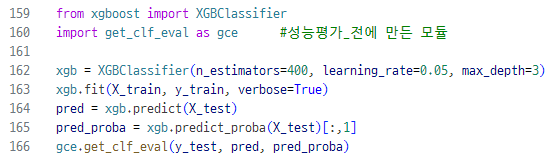 *XGBoost는 독자적인 프레임워크 기반의 XGBoost 가 있고, 사이킷런과 연동되는 모듈이 있는데