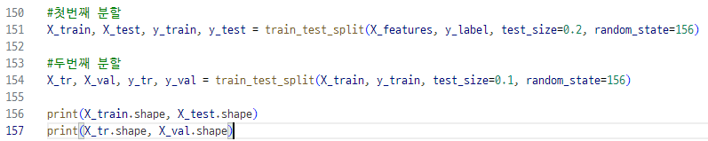 : 검증용을 별도로 분할이유는 검증 성능평가와 조기중단 수행해보기 위해 (XGBoost 자체 제공)